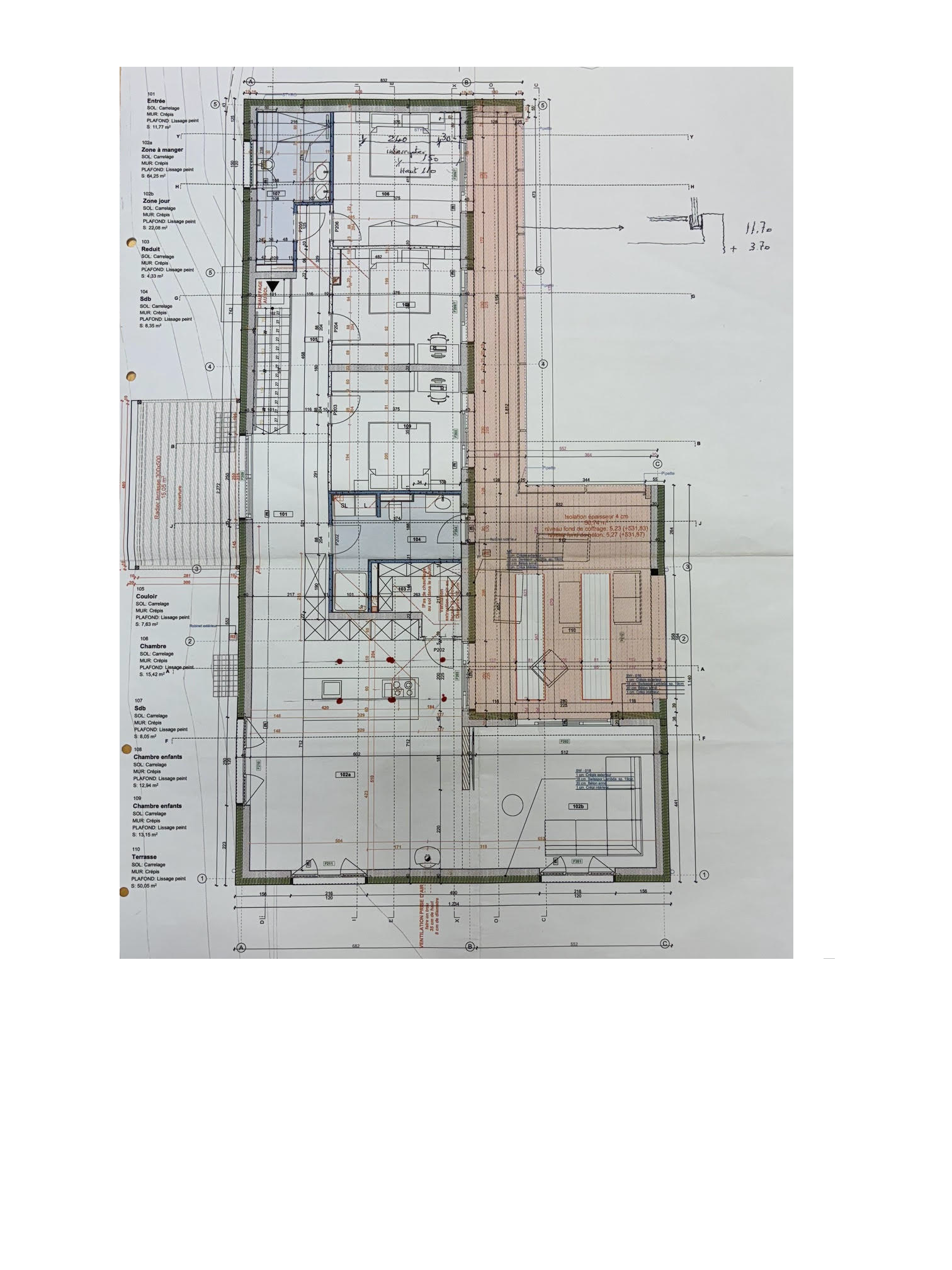 Die Wohnfläche beträgt 168 m2 und die Wohnfläche mit 1/3 Terrasse 189,7 m2.